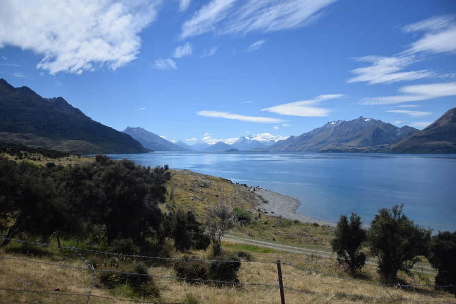 When in New Zealand… dann sollte der Besuch einer Schaffarm doch irgendwie Teil des Programmes sein. Also insofern zeitlich möglich und in der Nähe vorhanden. Beide Faktoren waren in Queenstown erfüllt, also zunächst ab aufs Boot und dann ab zu den Kuscheltieren. Die Mount Nicholas High Country Farm beherbergt knapp 30 000 Schafe, einige Pferde, Hunde und Helikopter(!) um diese über die Weiden und zum Scheren zu treiben. Besagte Weiden sind allerdings so riesig, dass wir als Touristen nur eine kleine Herde zu sehen bekamen, quasi als Beispiel. Dafür war die Landschaft umso atemberaubender.